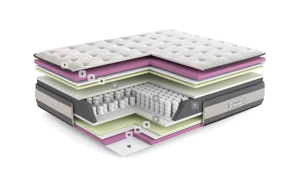 تأتي مرتبة أبرازو بتصميم مزدوج الوجه، حيث تجمع بين رغوة Airmousse التقنية لتمنحك أقصى درجات التكيف والانتعاش، وبين طبقة الألياف السيليكونية Fiber Cloud التي تضيف لمسة إضافية من الراحة.